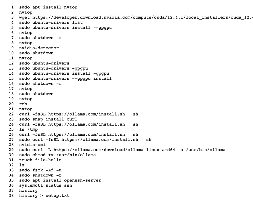 Really struggled this time to get ollama, you can see in the history (setup) below